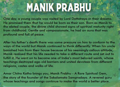 Amar Chitra Katha brings you, Manik Prabhu - A Rare Spiritual Gem, the story of the founder of the Sakalamata Sampradaya. A revered guru whose teachings and songs continue to make the world a better place.