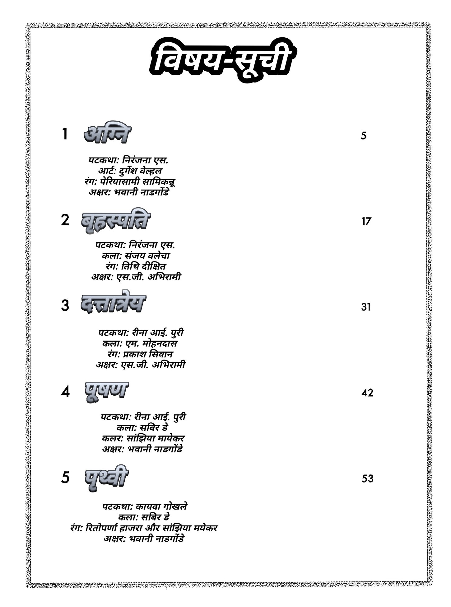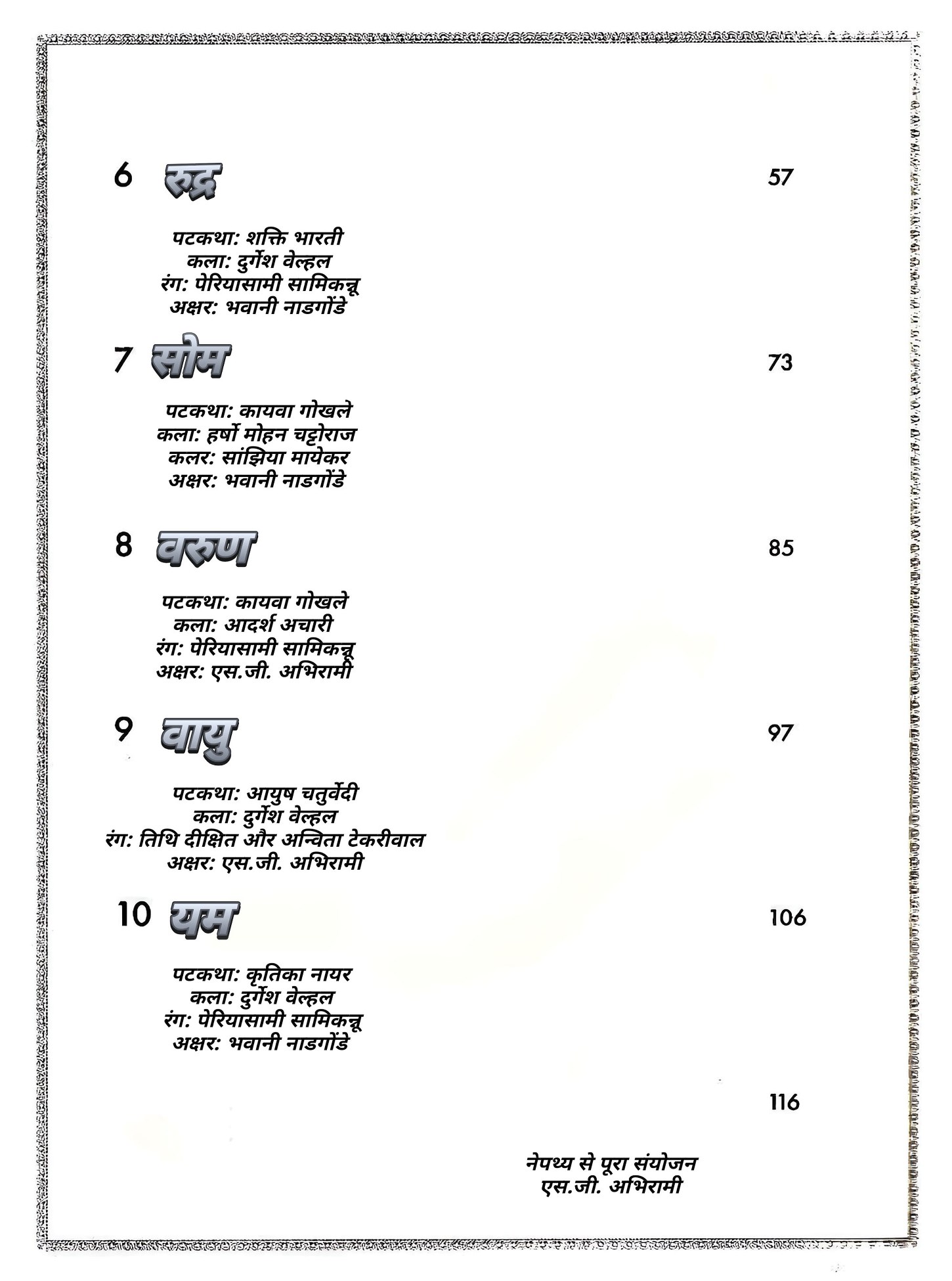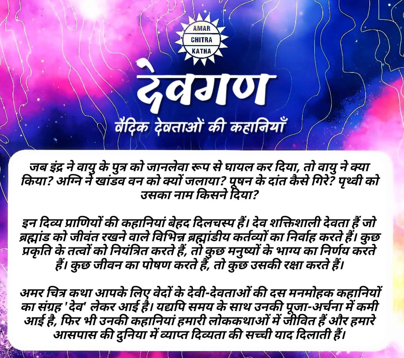 “देवगण – वैदिक देवताओं की कहानियाँ” एक रोचक और ज्ञानवर्धक कॉमिक्स है, जिसमें प्राचीन वैदिक देवताओं के महत्व, उनकी शक्तियों और मानव जीवन से उनके संबंध को सरल और चित्रात्मक रूप में प्रस्तुत किया गया है। इस कॉमिक्स में विभिन्न देवताओं की कथाएँ शामिल हैं, जैसे – अग्नि, इंद्र, वायु, वरुण आदि। हर कहानी हमें प्रकृति के किसी न किसी तत्व से जोड़ती है और यह समझाती है कि ये देवता केवल पौराणिक पात्र नहीं, बल्कि जीवन की मूल शक्तियों के प्रतीक हैं। कॉमिक्स का मुख्य आकर्षण अग्नि देव की कथा है, जिसमें बताया गया है कि अग्नि केवल यज्ञ का माध्यम ही नहीं, बल्कि देवताओं और मनुष्यों के बीच एक महत्वपूर्ण सेतु भी हैं। जब मनुष्य अग्नि का सम्मान करना भूल जाते हैं, तो अग्नि देव अदृश्य हो जाते हैं, जिससे संसार में अंधकार और संकट उत्पन्न हो जाता है। ऋषियों की तपस्या और प्रार्थना के बाद अग्नि देव पुनः प्रकट होते हैं और यह संदेश देते हैं कि प्रकृति और उसकी शक्तियों का सम्मान करना अत्यंत आवश्यक है। इसके अलावा, कॉमिक्स में महाभारत से जुड़ा प्रसंग भी दर्शाया गया है, जहाँ अग्नि देव अर्जुन और कृष्ण की सहायता से खांडव वन का दहन करते हैं और बदले में अर्जुन को दिव्य अस्त्र प्रदान करते हैं। इस कॉमिक्स में विभिन्न अन्य देवताओं की कथाएँ भी शामिल हैं, जैसे – अग्नि, इंद्र, वायु, वरुण आदि। हर कहानी हमें प्रकृति के किसी न किसी तत्व से जोड़ती है और यह समझाती है कि ये देवता केवल पौराणिक पात्र नहीं, बल्कि जीवन की मूल शक्तियों के प्रतीक हैं।