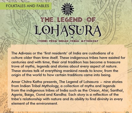 Amar Chitra Katha presents, The Legend of Lohasura - nine stories from Indian Tribal Mythology, a collection of myths and legends from the indigenous tribes of India such as the Oraon, Ahir, Santhal, Agaria, Baiga, Gond and Kandha. Each story is a reflection of the tribe's relationship with nature and its ability to find divinity in every element of the environment.