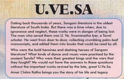 Sangam literature is considered to be the oldest literature of South India, with a history dating back thousands of years. However, these invaluable works were once in danger of being lost due to neglect and ignorance. But there was a time when, due to ignorance and neglect, these works were in danger of being lost. The man who saved them was U. Ve. Swaminatha lyer, a Tamil scholar. He went from door to door, collecting crumbling palm-leaf manuscripts, and edited them into books that could be read by all. Amar Chitra Katha brings you the story of his life and legacy.