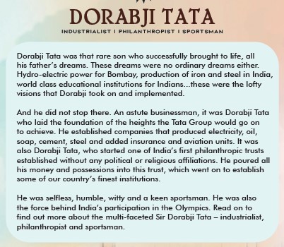 Dorabji Tata : INDUSTRIALIST | PHILANTHROPIST I SPORTSMAN
