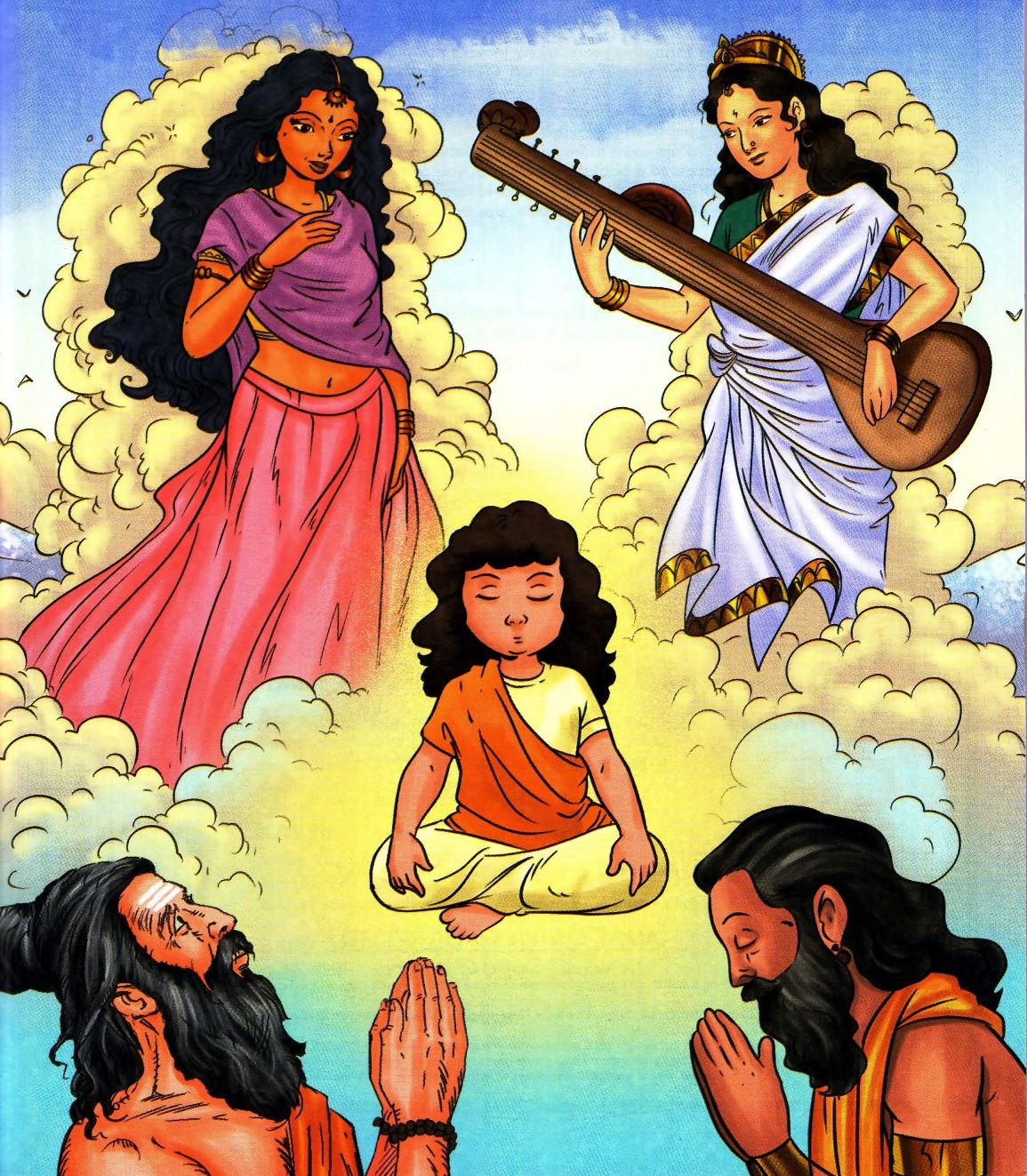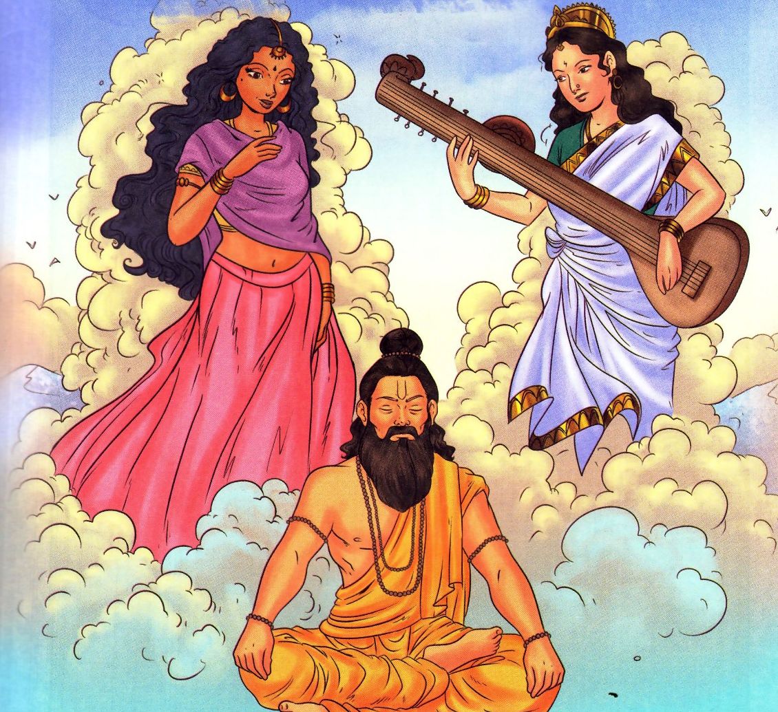 Once, in Brahmaloka, a gathering of sages assembled to recite the Sama Veda. Among them was the sage Durvasa, infamous for his short temper. As the chanting began, Durvasa sang a line out of tune. Hearing this, Saraswati laughed at him. Durvasa was furious. He was about to curse Saraswati when Brahma stopped him. "You are a sage revered in the three worlds, yet you lose your temper so easily. What is the use of all the meditation you have done?" he asked. Durvasa realized he had taken offence for a light matter. When he apologized to Brahma, Brahma advised him to go visit different holy places and pray for the strength to control his rage.