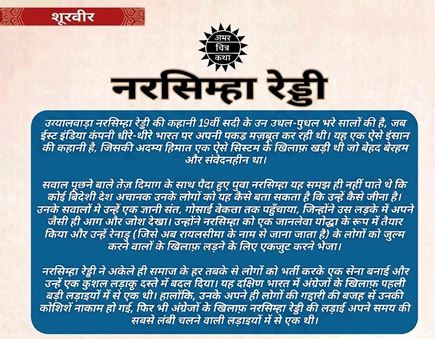 शेरदिल नरसिम्हा रेड्डी: एक महान योद्धा की कहानी! यह उय्यालवाड़ा नरसिम्हा रेड्डी की वीरता की गाथा है।